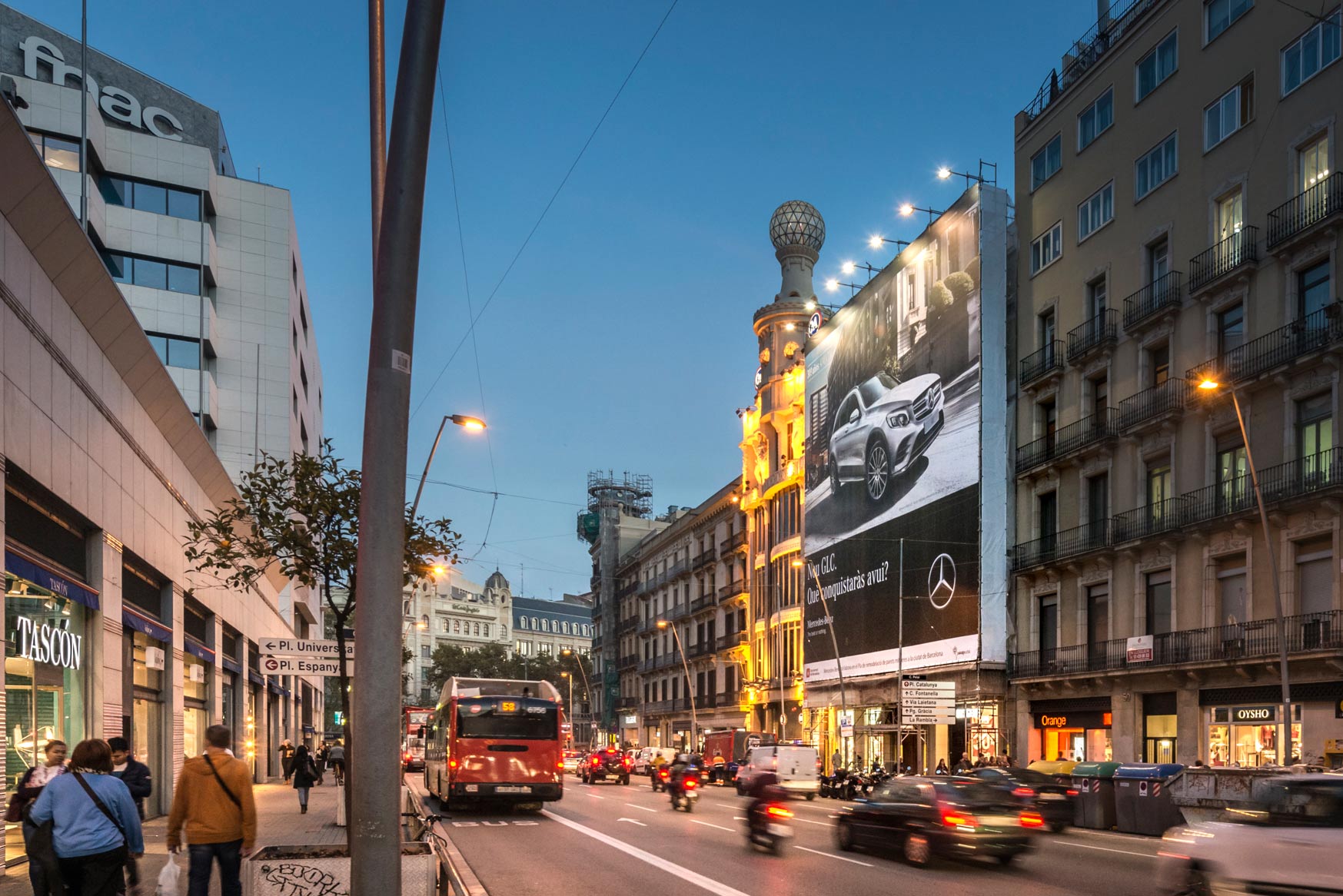 Paseando por la céntrica y concurrida calle Pelayo de Barcelona topamos con esta espectacular lona publicitaria de VSA COMUNICACION del nuevo MERCEDES GLC, ubicada en una de las calles más transitadas por turistas y autóctonos, al lado de Plaza Cataluña y Las Ramblas.
