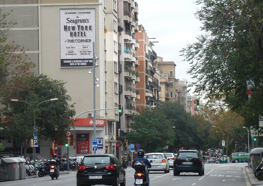 SEAGRAM’s ha vuelto a confirar en el Circuito de PYM’s de VSA COMUNICACION en Barcelona para su campaña de publicidad exterior en la que nos presenta Seagram’s New York Hotel at The Corner, un nuevo espacio ubicado en pleno centro de la Ciudad Condal de la mano de SEAGRAM’s y el hotel THE CORNER, un auténtico reclamo para todo aquel que quiera vivir como un auténtico neoyorquino en el Eixample de Barcelona desde hoy hasta el 16 de diciembre.