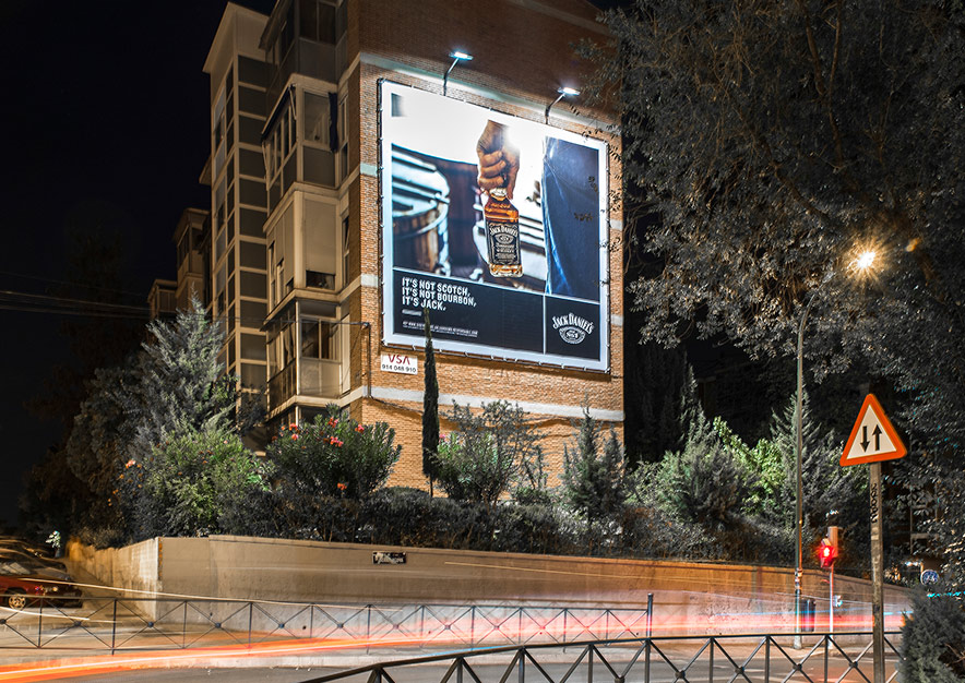 JACK DANIEL’s ha elegido para su campaña de publicidad exterior el Circuito URVAN de VSA COMUNICACIÓN en Madrid, compuesto por emplazamientos ubicados en las calles más céntricas del caso urbano de la ciudad consiguiendo un producto de gran formato diseñado para conseguir una alta notoriedad y nivel cualitativo. Este soporte está medido, cuantificado y optimizado por Geomex consiguiendo su máxima eficacia.