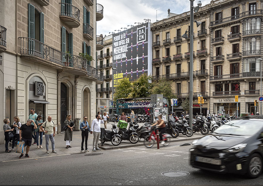 Aprovechando el CLÁSICO del año, Real Madrid-Barça, DAZN presenta su nueva campaña de publicidad “Porque ya es suficientemente difícil ser merengue en Barcelona” y ha confiado en VSA COMUNICACIÓN para comunicarlo en una gran lona publicitaria ubicada en uno de los mejores emplazamientos de Barcelona, en Rambla Cataluña, 11.