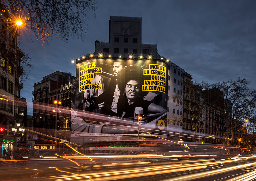 MORITZ, la primera cerveza de Barcelona, celebra sus más de 160 años desde su llegada a la ciudad condal. En VSA COMUNICACION nos sentimos sumamente afortunados por la confianza que MORITZ ha depositada en nosotros, y en nuestra experiencia en el medio de la publicidad exterior, eligiendo nuestro emplazamiento de la céntrica calle Balmes con Gran Vía de Barcelona e instalar la primera lona publicitaria de su historia.