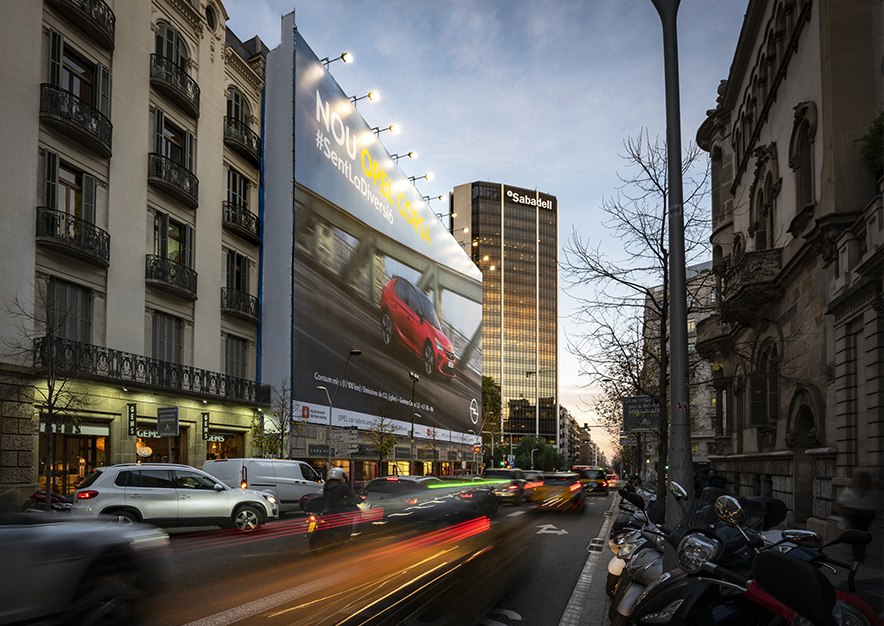 Lona Publicitaria de OPEL CORSA en la Diagonal de Barcelona