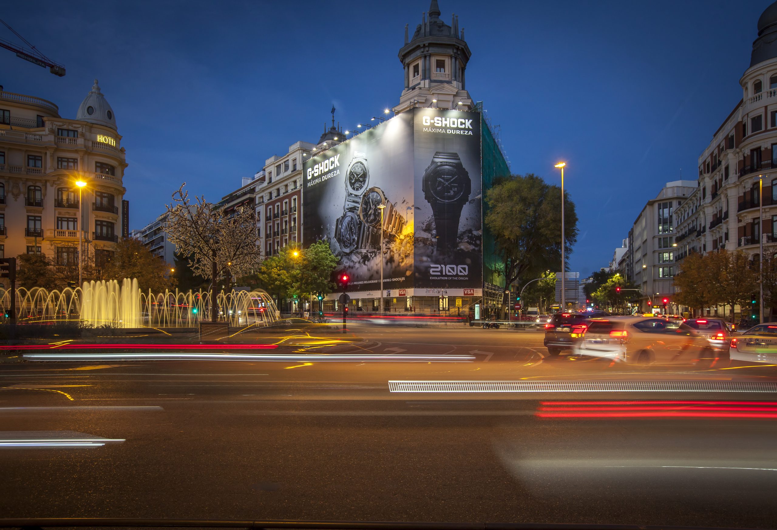 CASIO launches its new G-SHOCK watches, previously presented at the Basel fair, on our huge banner in Almagro, Madrid.