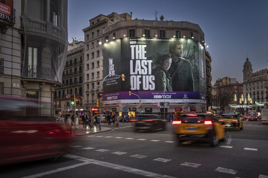 The Last of Us, se estrena en una gran lona en la calle Balmes de Barcelona y ha sido instalada por VSA. La primera temporada consta de 10 episodios y está escrita y diseñada de una forma claramente cinematográfica, ambientada en un futuro no muy lejano donde un extraño virus ha acabado con la civilización, transformando a la gente en extrañas criaturas conocidas como “infectados”.