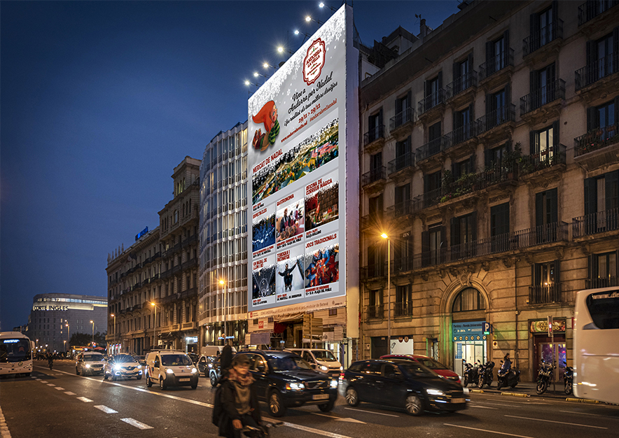 En el emplazamiento de VSA COMUNICACION en la Ronda Universidad de Barcelona podremos ver esta espectacular lona publicitaria, incluida en su campaña de publicidad exterior, en la que nos invitan a visitarlos y a disfrutar día a día de la programación repleta de actividades que nos tienen preparadas del 29 de noviembre al 29 de diciembre.