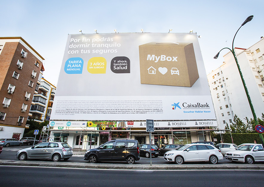 Inauguramos el nuevo emplazamiento de VSA COMUNICACION en Sevilla junto a CAIXABANK, dando inicio también a la campaña de publicidad exterior de MyBox con esta increíble lona publicitaria en la Avda. San Francisco Javier, una de las principales vías del centro de la ciudad, con un elevado tránsito de vehículo y transeúntes.