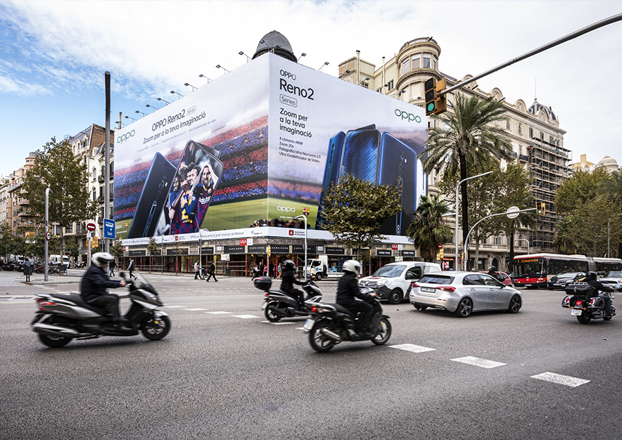 Lona Publicitaria de OPPO en Barcelona
