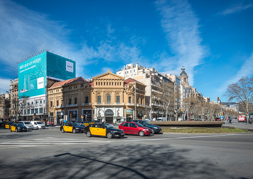 UBER, la red de transporte privado que opera a través de su software de aplicación móvil (app), ha llegado de nuevo a Barcelona y quiere comunicarlo a través de una fantástica campaña de publicidad exterior. Para ello, ha elegido el emplazamiento de VSA COMUNICACION en el Paseo de Gracia y la Gran Vía de les Corts Catalanes, exhibiendo una elegante y espectacular lona publicitaria.