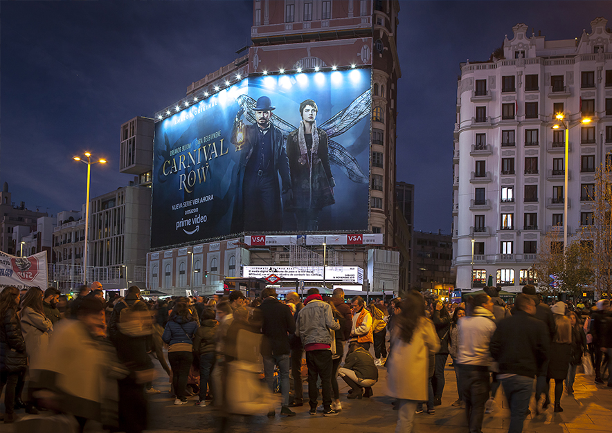 Si tenéis la opción de pasear estos días por la Gran Vía de Madrid no os perdáis la espectacular lona publicitaria de VSA COMUNICACION en el emblemático Edificio del Palacio de la Prensa anunciando el estreno el próximo 22 de noviembre de la versión doblada de CARNIVAL ROW, la nueva serie de AMAZON PRIME VIDEO, protagonizadas por Orlando Bloom y Cara Delevingne.