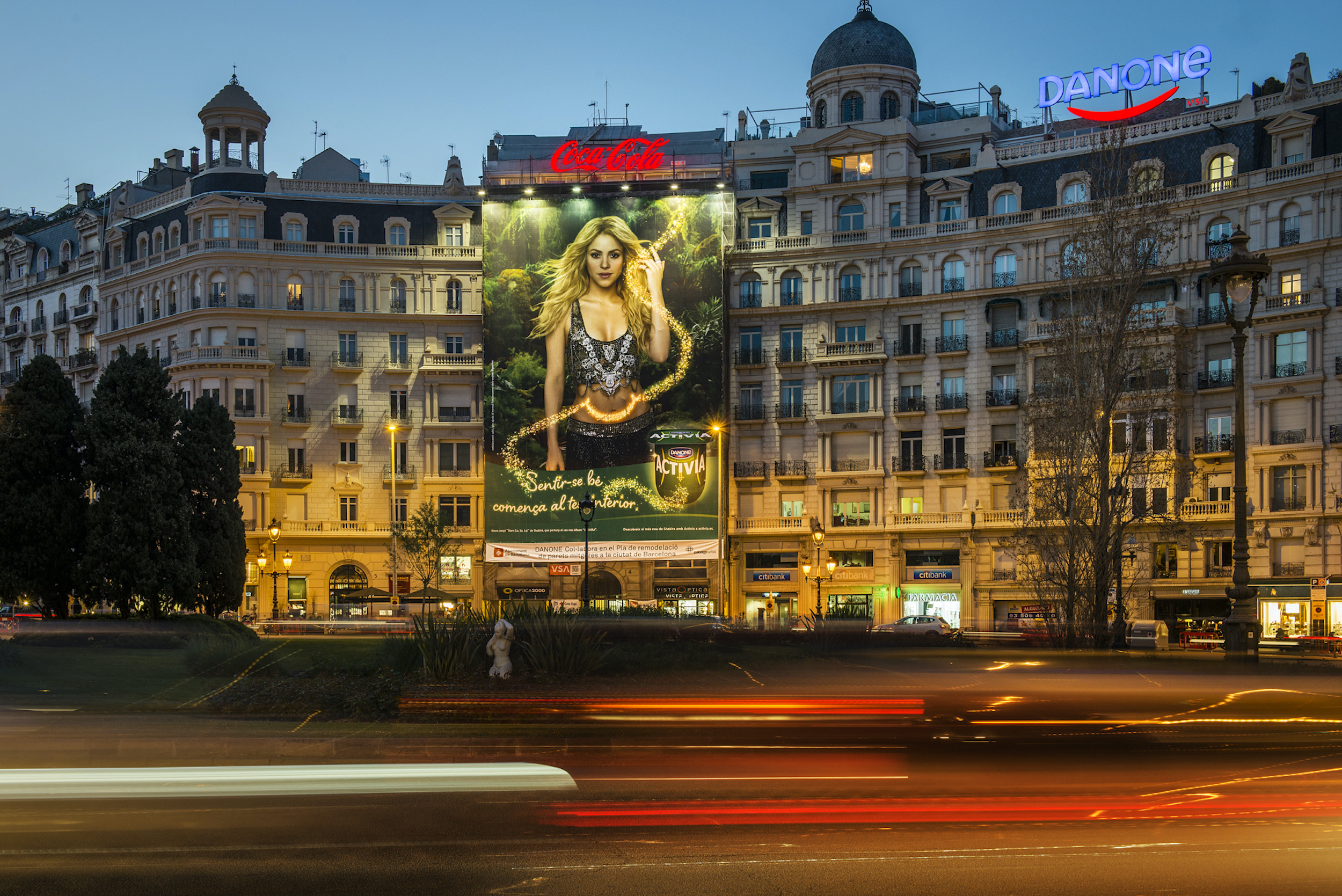 Danone ha confiado en VSA COMUNICACIÓN para llevar a cabo una acción especial en la lona de Francesc Macià, un recorrido de leds que simula los destellos de oro como símbolo de bienestar interior. Se enmarca en un bosque de fantasía, en el que la artista aparece bailando. Shakira según ha comentado durante el rodaje: «cuidar la salud interior es clave para sentirse bien y, para mí, la danza es una manera de mostrar que me siento bien por dentro y por fuera”.