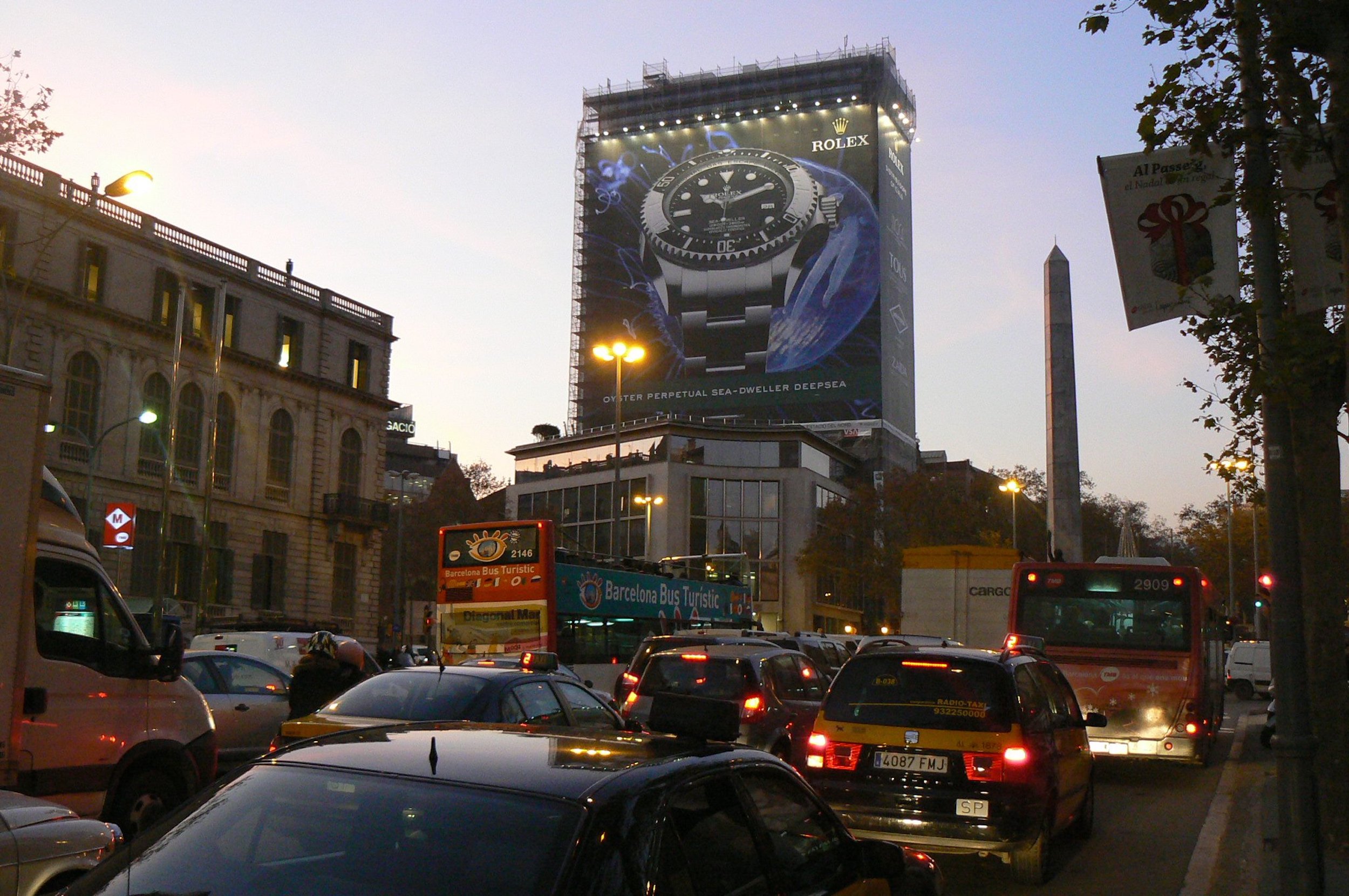 Espectacular lona publicitaria de VSA COMUNICACIÓN y ROLEX en el singular Edifico Deutsche Bank ubicado en el chaflán de Paseo de Gracia con la Avenida Diagonal, zona altamente comercial y de gran prestigio publicitario. Casi 2.000 m2 dedicados a ROLEX, marca líder de la industria relojera suiza, con sede en Ginebra desde 1905, y caracterizada por una notoriedad inigualable basada en su calidad y savoir-faire. Cada pieza, cada elemento y cada paso en el montaje de todos los componentes de sus colecciones cumple altos estándares de calidad, precisión y elegancia.