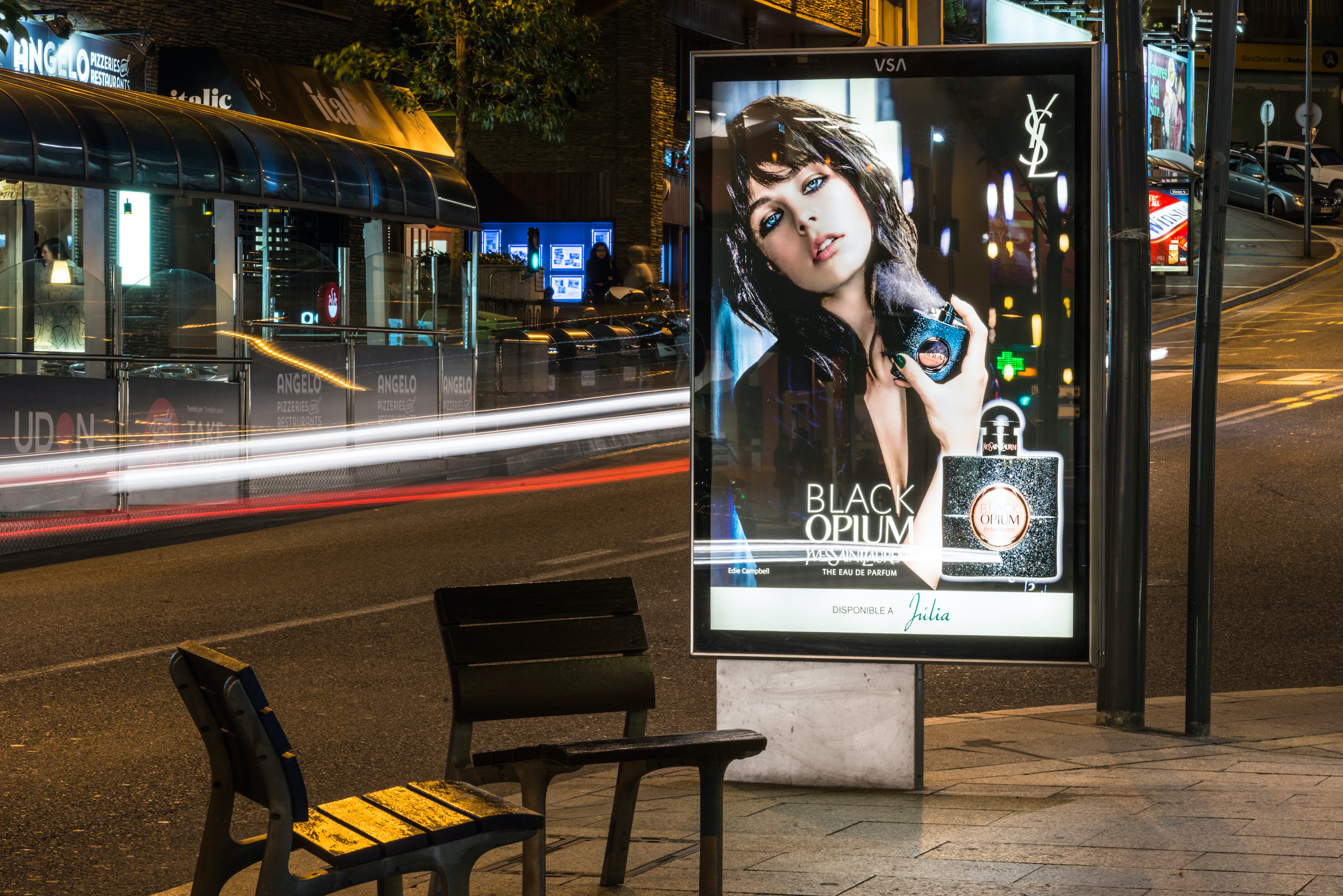 PERFUMERIA JULIA ha contado con el Mobiliario Urbano de VSA COMUNICACIÓN, abarcando los Parroquias de Escaldes-Engordany y Andorra la Vella, para presentarnos la fragancia femenina de YVES SAINT LAURENT que por primera vez fusiona notas florales con notas de café, BLACK OPIUM.
