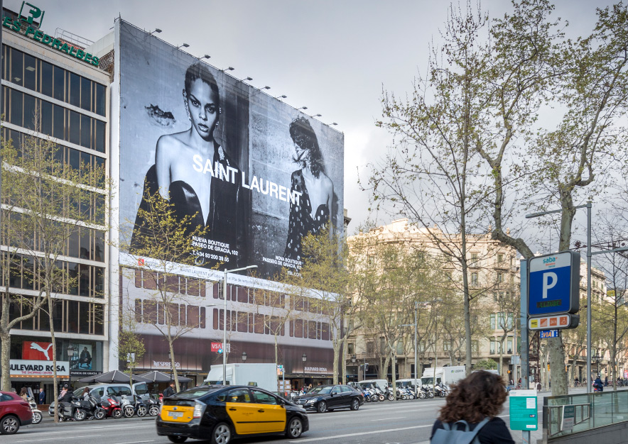 lona-publicitaria-barcelona-paseo-de-gracia-55-saint-laurent-dia-vsa-comunicacion