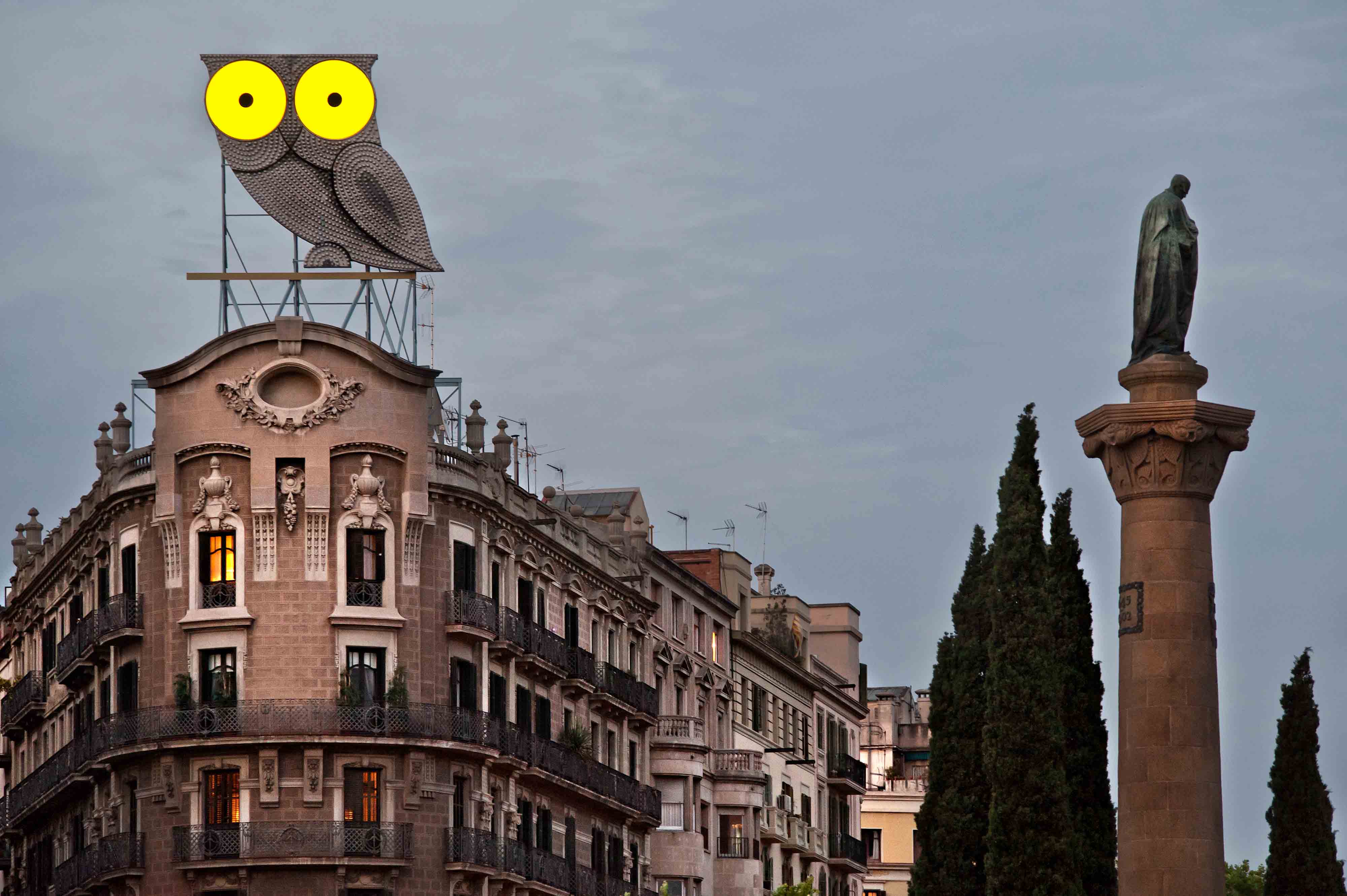 Durante décadas permaneció el BUHO de “Ròtuls Roura” en la coronación del edificio convirtiéndose en un icono y reclamo de la ciudad condal.